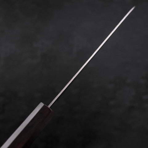 The Gyuto is an all-purpose knife with a pointed tip and a slender blade. The pointed tip enables an easy targeted cut and helps slice meat and fish. It used to be a knife for professional chefs but nowadays is also used by households. Its curved blade helps you apply force to cut food without effort.