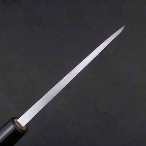 Pure carbon steel with minimal impurities. Proper forging and heat treatment produce blades that are sharp and easy to sharpen. Tungsten and chromium are added to improve heat treatment characteristics and wear resistance, resulting in long-lasting sharpness. A steel grade with rust resistance and easy maintenance by adding nickel and chromium.Traditional Kasumi polished finish. Kasumi roughly translated to “mist” or “cloud” and refers to the hazy appearance of the soft steel/iron cladding, in contrast to the fine polished cutting edge. This elegant finish is very common on traditional style Japanese blades.
