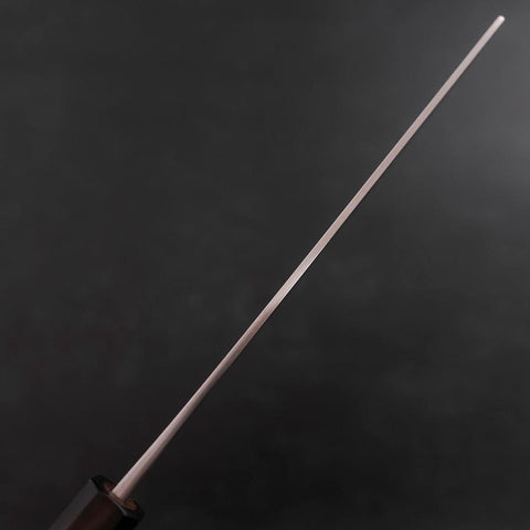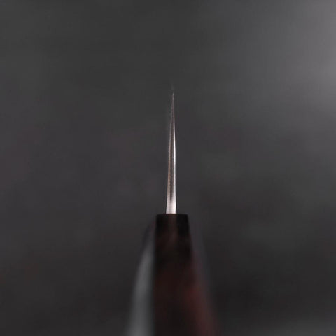 El material central del núcleo, SKD11 (acero de herramientas de aleación), utilizado para el filo de la hoja, es un acero de alto rendimiento extremadamente rico en carbono, equivalente al afamado Yasuki Aogami, y se templa hasta alcanzar una dureza Rockwell de 62-64 para lograr un filo excepcional y propiedades de retención sin igual.