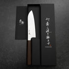 Un “Santoku" es un cuchillo para cualquier propósito, incluyendo carne, pescado y verdura. Está diseñado para tener las características tanto del Nakiri (cuchillo de verdura) como del Gyuto (cuchillo para carne) japoneses. Dado lo conveniente y práctico que resulta, es ampliamente utilizado en un gran número de hogares. Recomendado para recién iniciados en el uso de cuchillos japoneses y cocineros principiantes.