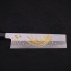 Cuchillo Usuba (Kanto) de acero al Carbono Blanco #2 con acabado Kasumi y Grabado en Oro Fénix y Sakura, mango de Ébano y Cuerno de Búfalo, 180 mm