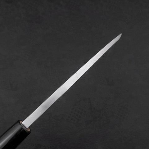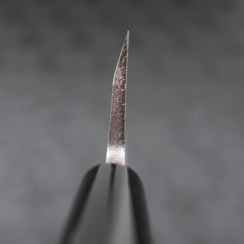 Shirogami No.2 tiene impurezas mínimas y una estructura de grano muy fino, por lo que es ideal para herramientas de corte delicado, como cuchillos de estilo tradicional japonés. A pesar de ser un acero de carbono 'simple', Shirogami No.2 mantiene muy bien el filo y también es muy fácil de volver a afilar. Se recomienda especialmente para usuarios que están utilizando cuchillos de estilo tradicional japonés por primera vez.El acabado Kurouchi, la parte no procesada (negra) en la parte superior de la hoja ya ha desarrollado una pátina oscura, que protege la cuchilla y le proporciona un aspecto tradicional japonés.