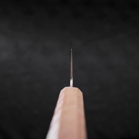 El Gyuto es un cuchillo todo-propósito con una punta puntiaguda y una hoja delgada. La punta puntiaguda permite dirigir los cortes con facilidad y ayuda a rebanar carne y pescado sin dificultad. Solía ser un cuchillo para chefs profesionales pero hoy en día también es usado en hogares. Su hoja curva le ayudará a aplicar fuerza eficientemente para poder cortar su comida sin esfuerzo.