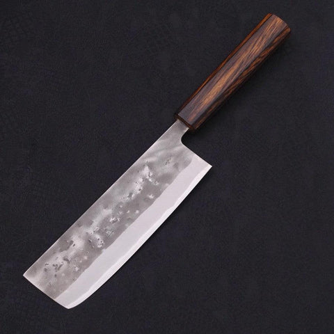 Cuchillo Nakiri de acero al Carbono Azul #2 con acabado Nashiji y mango Sumi-Urushi, 165 mm
