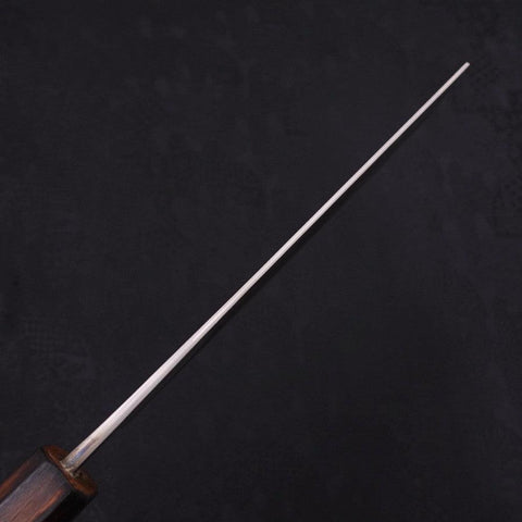Aogami No.2 (Hitachi Metals Ltd.) is made by adding Chromium and Tungsten / Wolfram to Shirogami No.2. This results in increased toughness and the production of hard carbide molecules which improve edge retention. Many knife users have noted that while Aogami No.2 is very similar to Shirogami No.2 in terms of edge sharpness, it has slightly superior edge retention.The Japanese term “Nashiji” (English: Pear skin pattern) refers to the result of a technique that appears to leave the surface finish of a blade looking unfinished and rustic.