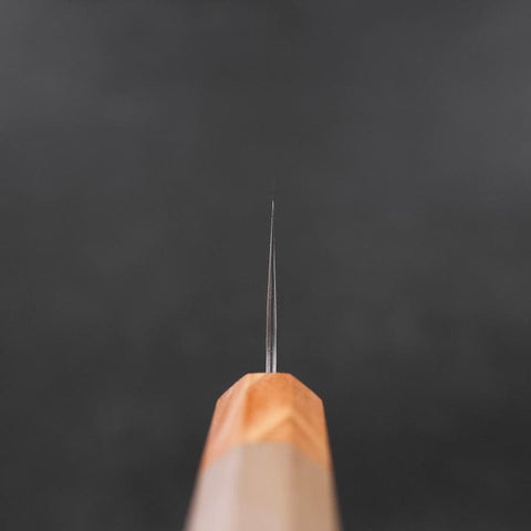 The handles on these knives are Octagonal Oak wood dye Japanese Lacquer (Urushi) that recalls the images of Japanese tradition.