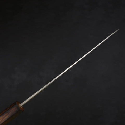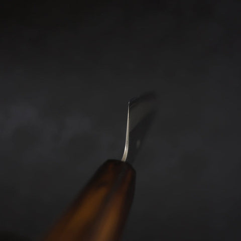 White Steel No.1 is made by further refining White Steel No.2 and adding more Carbon. The extra Carbon allows it to achieve a slightly higher HRc. than White Steel No.2, but also makes it a bit more brittle. White No.1 is very popular with professional chefs who make traditional Japanese cuisine because it can be sharpened to an exceedingly fine edge, has very good edge retention and is easy to re-sharpen.Migaki (Polished) line of knives feature beautiful edge geometry and are quite thin behind the edge and at the spine. They have an excellent cutting feel and are light and feel very nimble and comfortable in the hand.