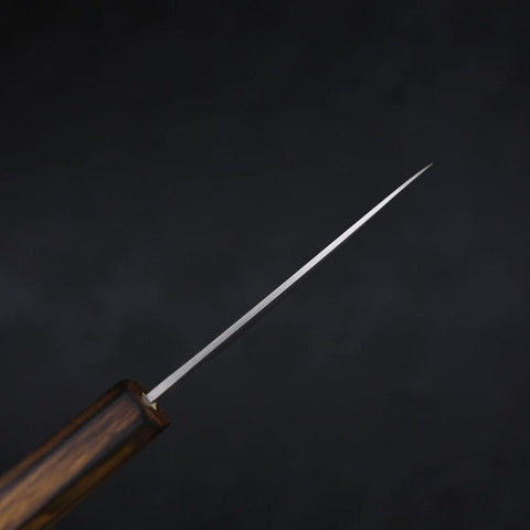 White Steel No.1 is made by further refining White Steel No.2 and adding more Carbon. The extra Carbon allows it to achieve a slightly higher HRc. than White Steel No.2, but also makes it a bit more brittle. White No.1 is very popular with professional chefs who make traditional Japanese cuisine because it can be sharpened to an exceedingly fine edge, has very good edge retention and is easy to re-sharpen.Migaki (Polished) line of knives feature beautiful edge geometry and are quite thin behind the edge and at the spine. They have an excellent cutting feel and are light and feel very nimble and comfortable in the hand.
