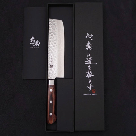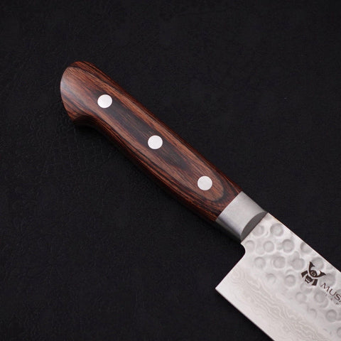 The knife bears visible impressions of the hand-forging process (round hammer dents on the blade), which gives it a beautiful finish and also prevents food from sticking to the blade.