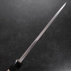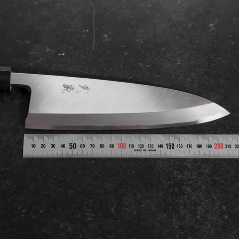 Aogami No.2 (Hitachi Metals Ltd.) is made by adding Chromium and Tungsten / Wolfram to Shirogami No.2. This results in increased toughness and the production of hard carbide molecules which improve edge retention. Many knife users have noted that while Aogami No.2 is very similar to Shirogami No.2 in terms of edge sharpness, it has slightly superior edge retention.Traditional Kasumi polished finish. Kasumi roughly translated to “mist” or “cloud” and refers to the hazy appearance of the soft steel/iron cladding, in contrast to the fine polished cutting edge. This elegant finish is very common on traditional style Japanese blades.