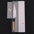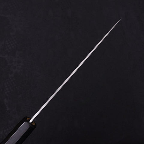 White Steel No.1 is made by further refining White Steel No.2 and adding more Carbon. The extra Carbon allows it to achieve a slightly higher HRc. than White Steel No.2, but also makes it a bit more brittle. White No.1 is very popular with professional chefs who make traditional Japanese cuisine because it can be sharpened to an exceedingly fine edge, has very good edge retention and is easy to re-sharpen.Migaki (Polished) line of knives feature beautiful edge geometry and are quite thin behind the edge and at the spine. They have an excellent cutting feel and are light and feel very nimble and comfortable in the hand.