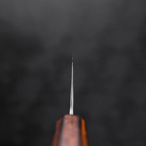 White Steel No.1 is made by further refining White Steel No.2 and adding more Carbon. The extra Carbon allows it to achieve a slightly higher HRc. than White Steel No.2, but also makes it a bit more brittle. White No.1 is very popular with professional chefs who make traditional Japanese cuisine because it can be sharpened to an exceedingly fine edge, has very good edge retention and is easy to re-sharpen.Migaki (Polished) line of knives feature beautiful edge geometry and are quite thin behind the edge and at the spine. They have an excellent cutting feel and are light and feel very nimble and comfortable in the hand.