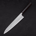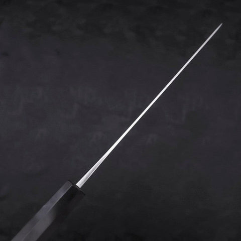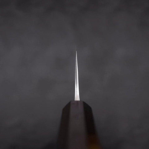 The Gyuto is an all-purpose knife with a pointed tip and a slender blade. The pointed tip enables an easy targeted cut and helps slice meat and fish. It used to be a knife for professional chefs but nowadays is also used by households. Its curved blade helps you apply force to cut food without effort.