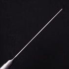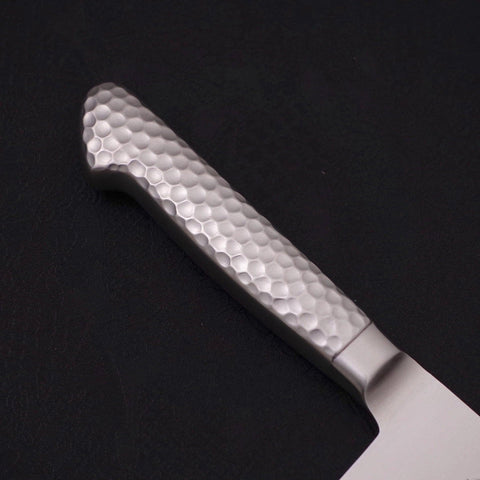 VG-5 is a sub group of the V Gold line of stainless steels. It is a similar steel to the ubiquitous VG-10 with a slightly larger grain structure which is the result of a higher vanadium content. It is a rugged steel, able to take a nice edge and hold it through a long session at the chopping board. It is a relatively easy steel to sharpen as compared to most other stainless alloys available.Migaki (Polished) line of knives feature beautiful edge geometry and are quite thin behind the edge and at the spine. They have an excellent cutting feel and are light and feel very nimble and comfortable in the hand.