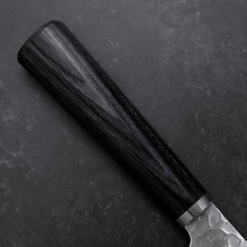 The knife bears visible impressions of the hand-forging process (round hammer dents on the blade), which gives it a beautiful finish and also prevents food from sticking to the blade.