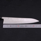 The Gyuto is an all-purpose knife with a pointed tip and a slender blade. The pointed tip enables an easy targeted cut and helps slice meat and fish. It used to be a knife for professional chefs but nowadays is also used by households. Its curved blade helps you apply force to cut food without effort.