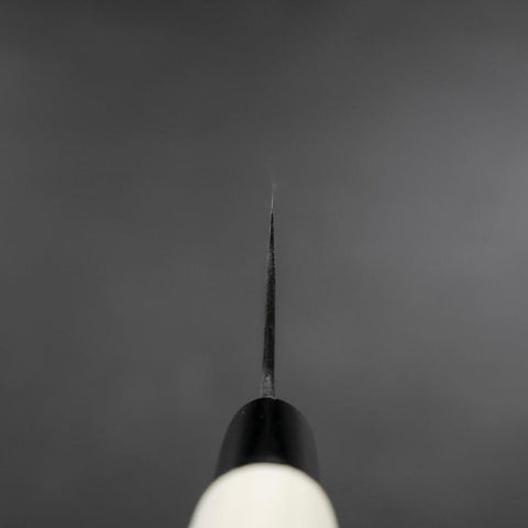 Shirogami No.2 has minimal impurities and a very fine grain structure, so it is ideal for fine cutting tools such as Japanese traditional-style knives. Despite being a ‘simple’ carbon steel, Shirogami No.2 has very good edge retention and it is also very easy to re-sharpen. Recommended for first-time users of Japanese traditional-style knives.Kurouchi Finish, the unprocessed (black) part on the top side of the blade has already developed a dark patina, which protects the blade and gives it a traditional Japanese look.