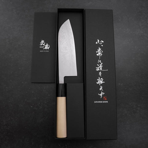Santoku Blue Super Damascus Buffalo Magnolia Handle 165mm
