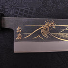 Santoku Blue Steel #2 Kurouchi Chokin Nami-Fuji Buffalo Ebony Handle 170mm