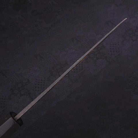 This Santoku Blue Steel #2 Kurouchi Chokin Nami-Fuji handle has a beautiful Buffalo Ebony finish, perfect for slicing and dicing with precision and ease. Its 170mm blade is sure to be a standout in your kitchen. Experience fast and effortless chopping with this fantastic knife.