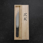 Aogami No.1 steel is a pure steel with fewer impurities than normal steel, and has the characteristic of being able to produce a much stronger hardness than Aogami No.2 steel. It is the best choice for those who are in the main profession, as well as for those who are looking for better sharpness and longevity of the blade.Kurouchi Finish, the unprocessed (black) part on the top side of the blade has already developed a dark patina, which protects the blade and gives it a traditional Japanese look.