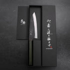 Shirogami No.2 has minimal impurities and a very fine grain structure, so it is ideal for fine cutting tools such as Japanese traditional-style knives. Despite being a ‘simple’ carbon steel, Shirogami No.2 has very good edge retention and it is also very easy to re-sharpen. Recommended for first-time users of Japanese traditional-style knives.Kurouchi Finish, the unprocessed (black) part on the top side of the blade has already developed a dark patina, which protects the blade and gives it a traditional Japanese look.