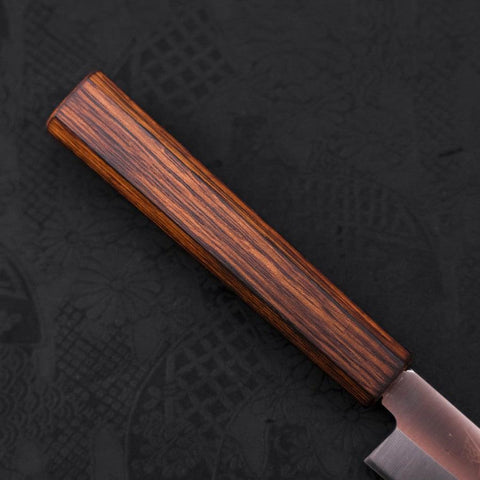 柳刃是一種長的切片刀,設計用於為壽司和刺身切成薄片。其優雅的薄刀片之美在於它能夠連續不斷地切穿食材,保持其完整性和新鮮度。即使是最簡單的任務也會因為這把手工製作的刀而提升到美感與實用性的結合。