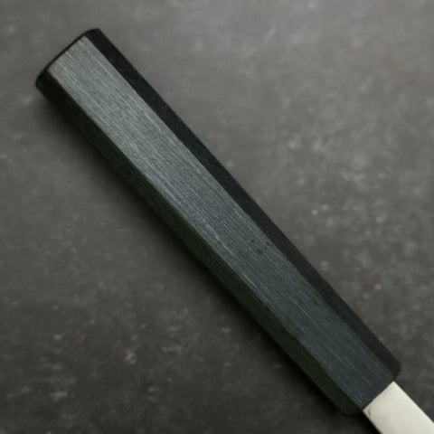 The handles on these knives are Octagonal Oak wood dye Japanese Lacquer (Urushi) that recalls the images of Japanese tradition.