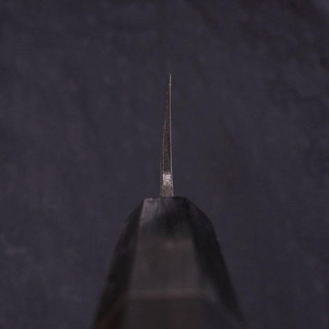 Aogami No.2 (Hitachi Metals Ltd.) is made by adding Chromium and Tungsten / Wolfram to Shirogami No.2. This results in increased toughness and the production of hard carbide molecules which improve edge retention. Many knife users have noted that while Aogami No.2 is very similar to Shirogami No.2 in terms of edge sharpness, it has slightly superior edge retention.Suminagashi translates as floating ink and refers to the beautiful marbled wave-like patterns that extend through the blade from the tip to the heel, unveiling a new mosaic with every sharpening.