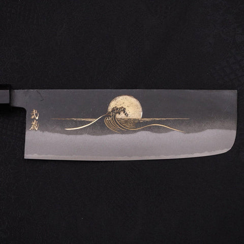 菜切 白紙2號鋼 黑打 浪花-太陽 黑檀水牛柄 165mm