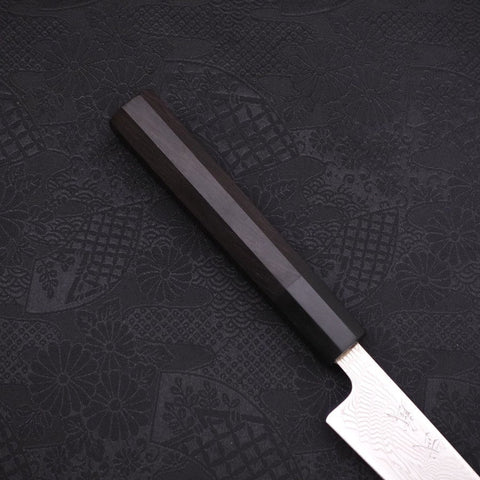 Designed by Hitachi as a steel used for dies to cut and punch other steels, it has also proven itself in the Japanese cutlery world. This stainless steel that is quite durable and holds a razor edge. So far in our experience sharpening and using SLD steel, we find it sharpens similarly to carbon steel, but is a little on the tougher side. Damascus is a laminated steel knife made of several layers of different steel materials. The center of the blade is made of hard steel for sharpness, and both sides are covered with multiple soft steel materials. The multiple steels are metallurgically joined, not by plating or glue. The more the blade is forged, the more complex the ripples become, and the more beautiful the unique grain pattern becomes.